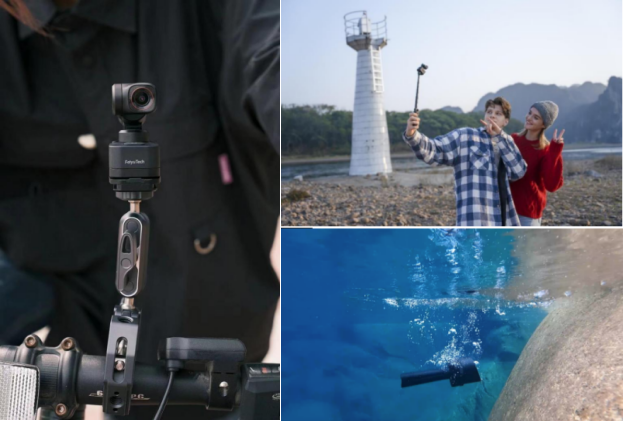 不仅如此,feiyu pocket 3底座预留有1/4螺纹孔,可以安装到延长杆、三角架等拍摄设备上,实现丰富拓展玩法。