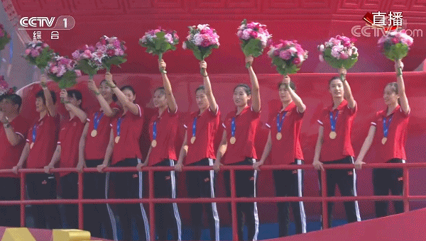登上此次庆祝中华人民共和国成立70周年大会 阅兵式 群众游行“祖国万岁”方阵的排球人员有:排协主席李全强、国家队主教练郎平、排协副主席助理教练赖亚文、助理教练安家杰,女排国家队员朱婷、张常宁、袁心玥、颜妮、丁霞、王梦洁、龚翔宇、林莉、曾春蕾、王媛媛、刘晓彤、李盈莹、姚迪、杨涵玉、刘晏含、郑益昕。(如下图)