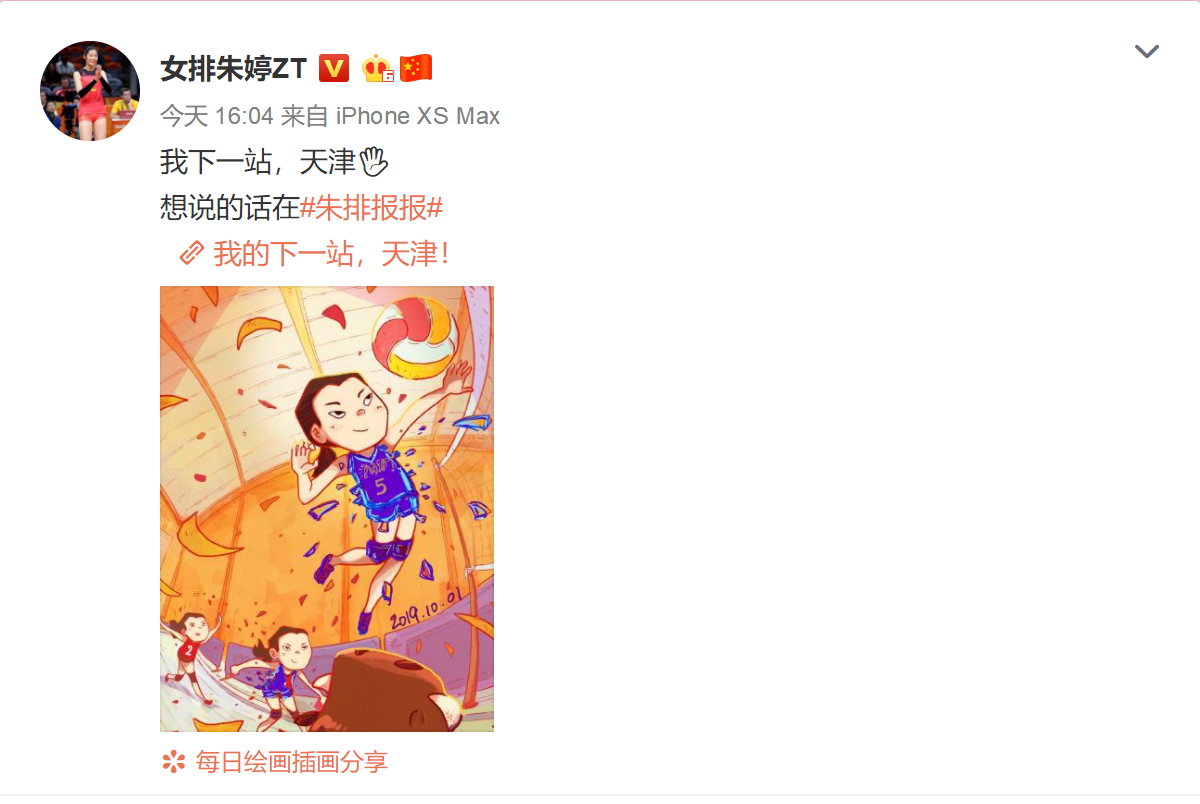今天下午,朱婷在自己的社交账号上发布出了自己的最新动态。