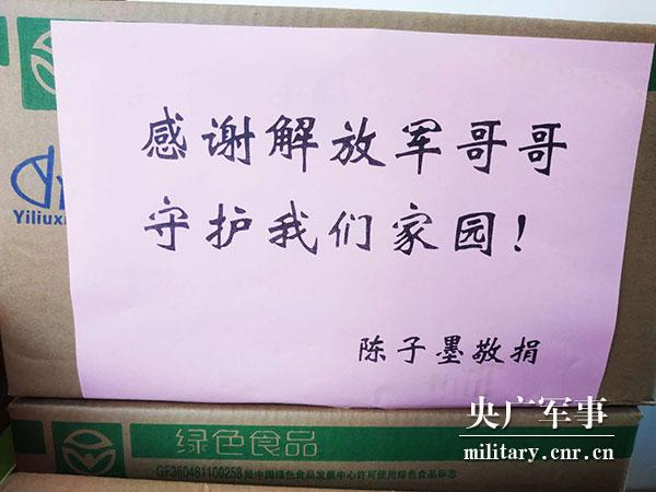 初二学生陈子墨,在妈妈和舅舅的陪同下,用自己的零花钱购买了食品、生活用品,向抗洪官兵送上暖心慰问。