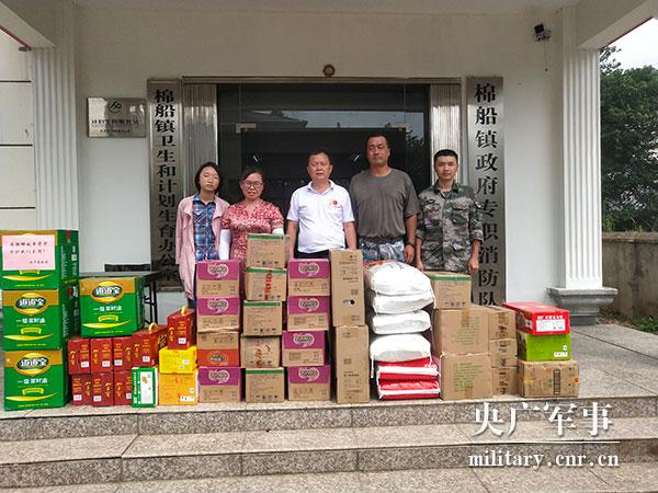 在芙蓉镇,一位大娘把刚采摘的新鲜蔬果送到官兵手中,还有不少老百姓煮上一大锅银耳莲子汤、绿豆汤,为前线官兵消暑,有些老百姓顾不上自己吃饭,第一时间将煮好的茶叶蛋送到官兵手中。