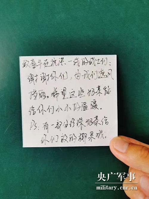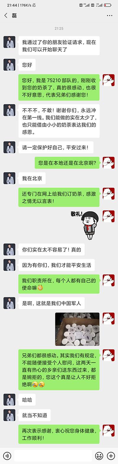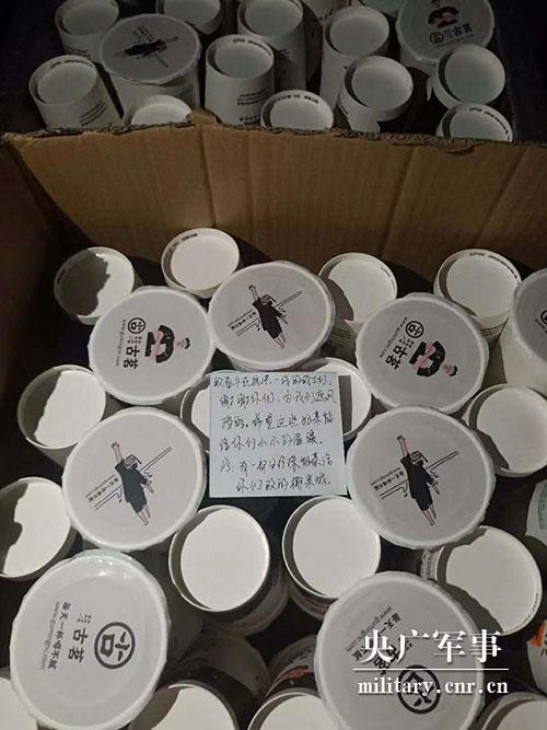 在彭泽县执行抗洪任务的某部官兵收到了一份特殊慰问品。6名外卖小哥组成的骑队,将100杯奶茶送到了抗洪一线。据了解,这是一名来自北京的热心群众,为前线官兵遥寄的祝福与感谢,卡片上质朴的语言,饱含着对子弟兵们勇敢逆行、奋战洪魔的深深热爱。
