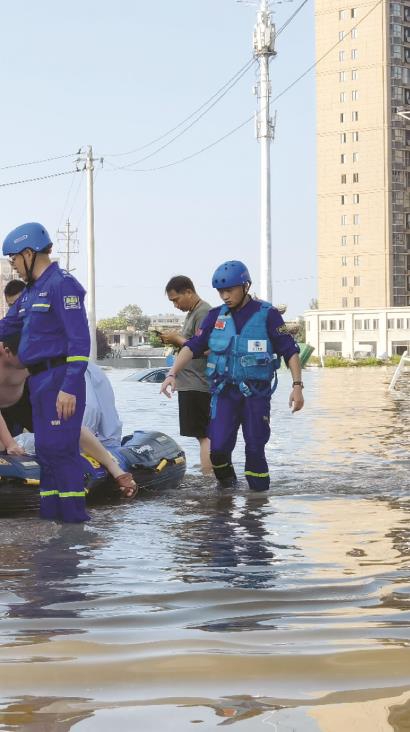 7月23日10时,贵州遵义市蓝天救援队紧急启动跨省救援,组织队员前往河南省受灾地区救援。次日中午,张精豪所在的这支救援队,抵达河南新乡、卫辉等救援一线。“这一天,我们一度在水里连泡了18个小时。”身强力壮的张精豪与当地救援队员们合作,一起爬楼,帮助转移被困的群众。